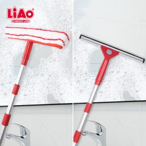 شيشه پاک کن بدون رد 30 سانتی سری حوله ای میکروفایبر با یدک اضافه دسته بلند آلومینیومی تلسکوپي 55-120سانتي