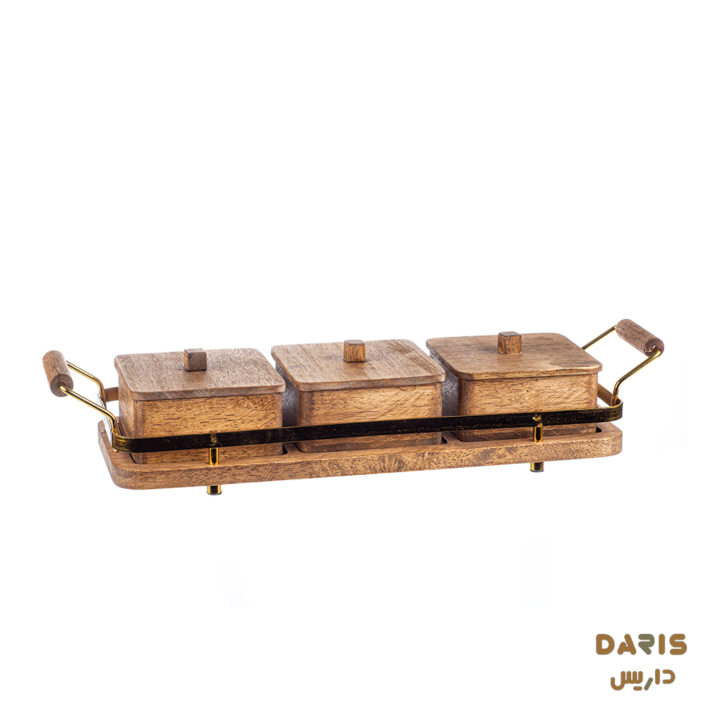 خانه محصولات چوبی ظروف چوبی اردور سه پیاله دسته دار گردویی فریم طلایی 36-1151