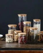 بانکه پیرکس درب چوب مربع قطر 6 سانتی متر