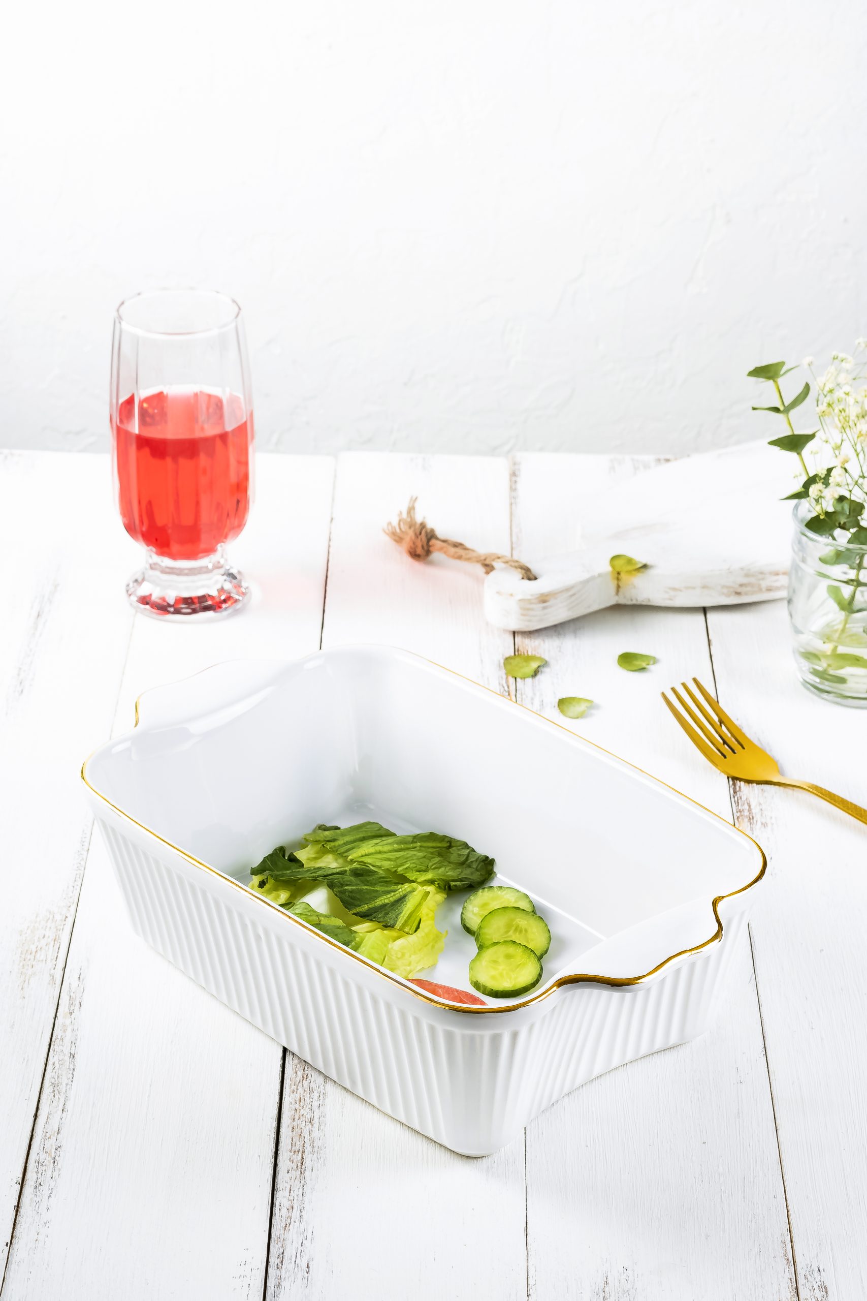 خانه ظرف چینی و سرامیک کاسه کشکول تابه تابه سرامیکی مستطیل لب طلا شیاردار 744