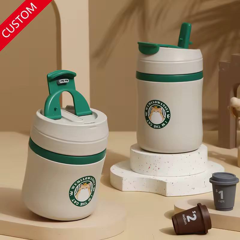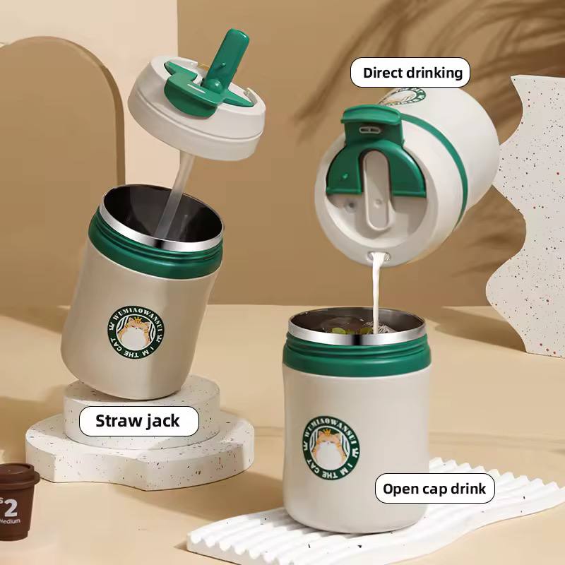 خانه بطری و تراول ماگ ظرف غذا تراول ماگ تپل 480 میلی لیتر طرح cat استارباکس 2829