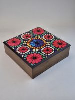 از جعبه دستمال گرفته تا سینی پذیرایی و جعبه‌های چندمنظوره، همه با طراحی‌های الهام‌گرفته از نقش‌ونگار فرش ایرانی یا طرح‌های خاص، و با روکش رزین شفاف و مقاوم، ساخته شده‌اند تا هم کاربردی باشند، هم ماندگار و متفاوت.