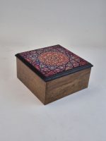 از جعبه دستمال گرفته تا سینی پذیرایی و جعبه‌های چندمنظوره، همه با طراحی‌های الهام‌گرفته از نقش‌ونگار فرش ایرانی یا طرح‌های خاص، و با روکش رزین شفاف و مقاوم، ساخته شده‌اند تا هم کاربردی باشند، هم ماندگار و متفاوت.