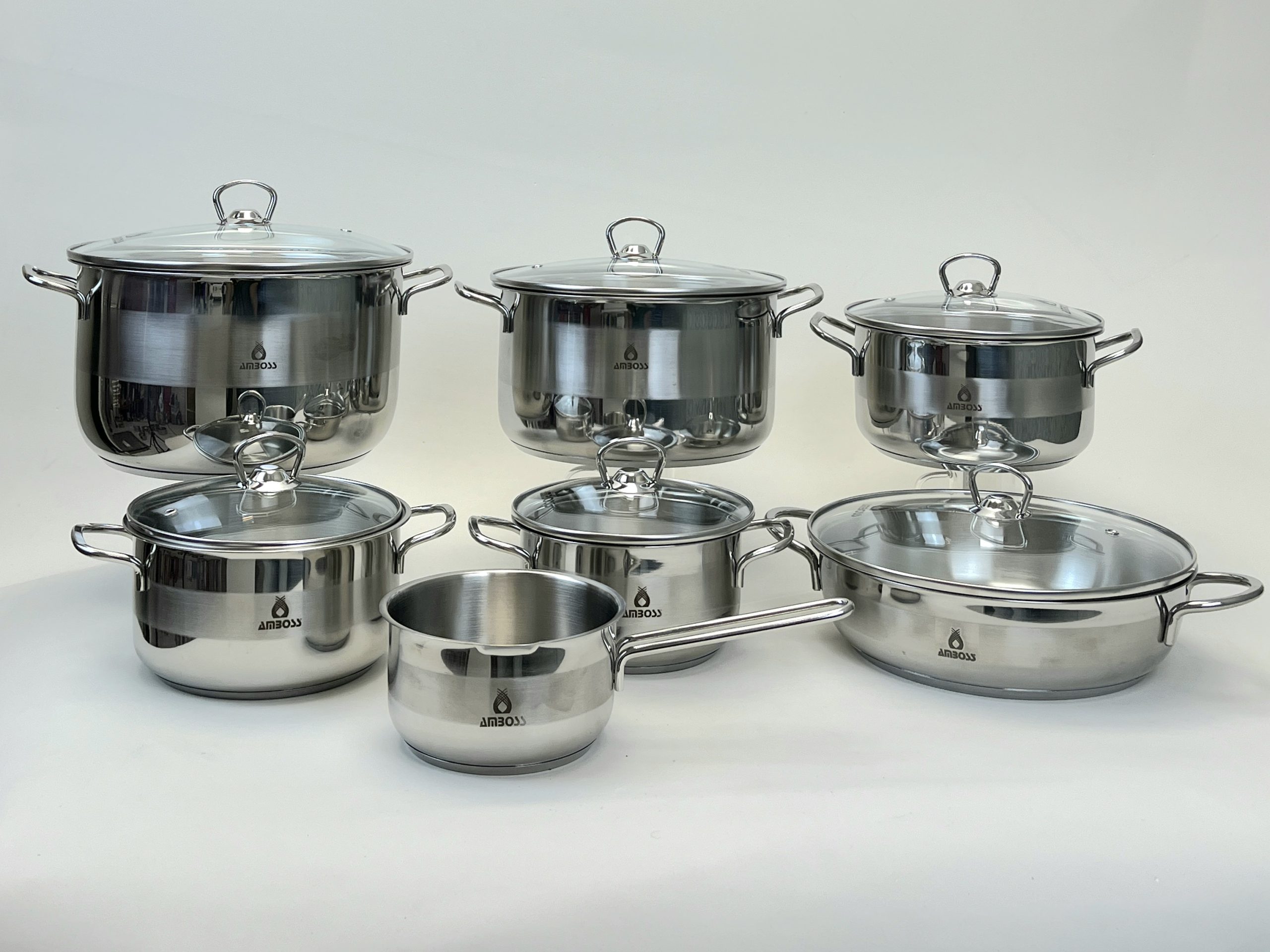 سرویس قابلمه استیل طلایی 13 پارچه amboss