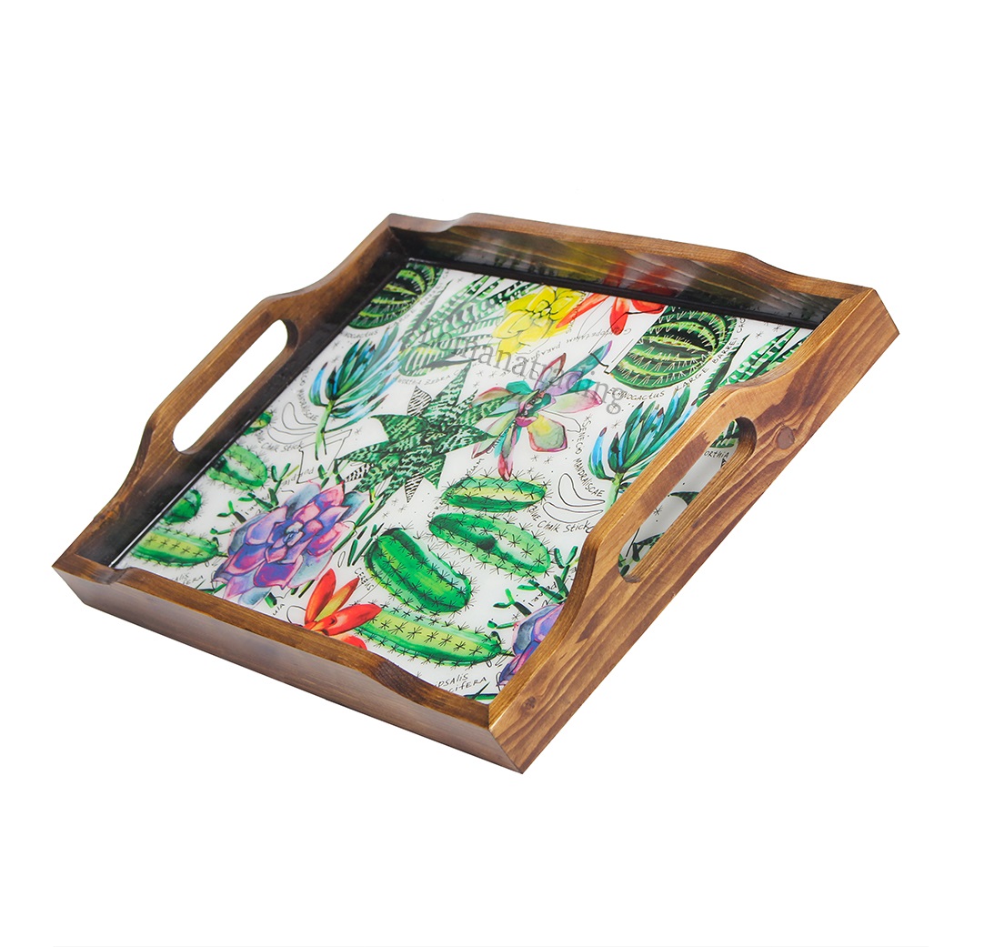 سینی چوبی طرح دار کاکتوس