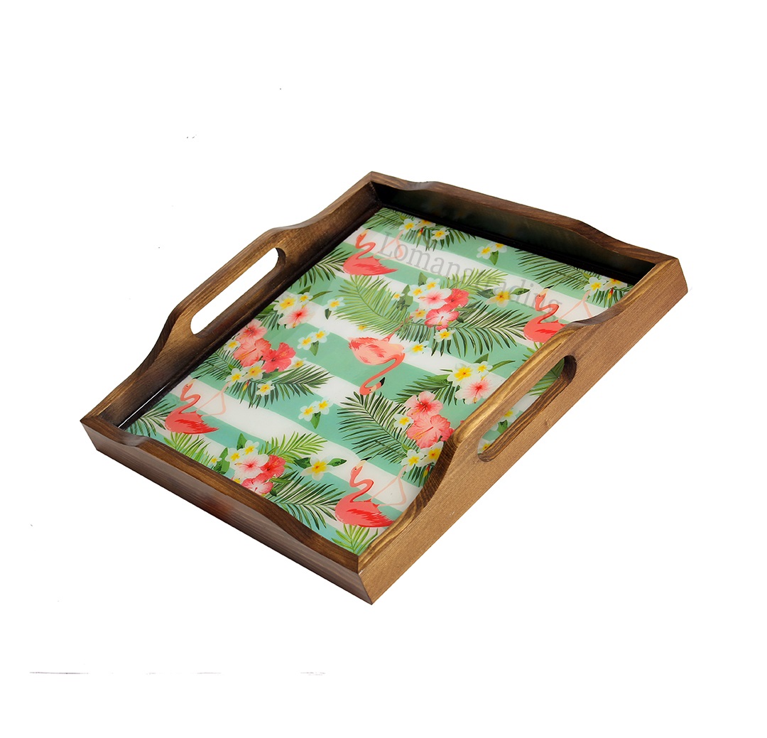سینی چوبی طرح دار مربع فلامینگو