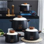 خانه سرویس آشپزخانه ظروف پخت و پز قابلمه شعله سرامیکی مستقیم 4 لیتر مشکی