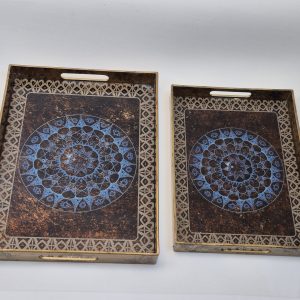 سینی چوبی مستطیل لبه دار فریم طلایی 352-103-104