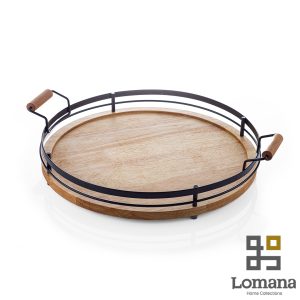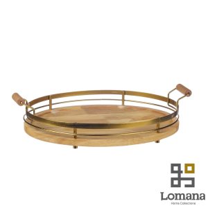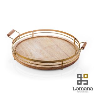 سینی چوبی گرد لبه دار فریم طلایی 352-105-106